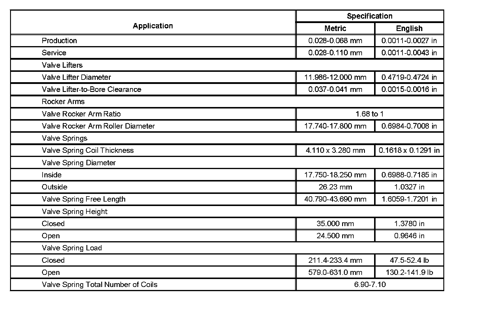 Engine Mechanical Specifications (Part 4):