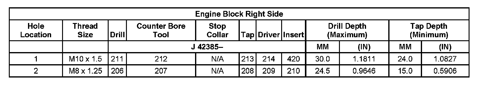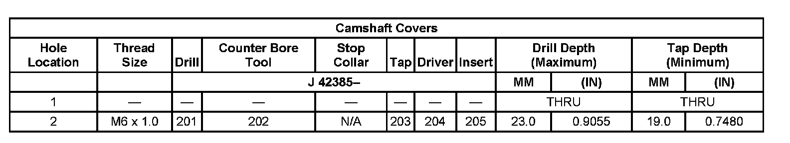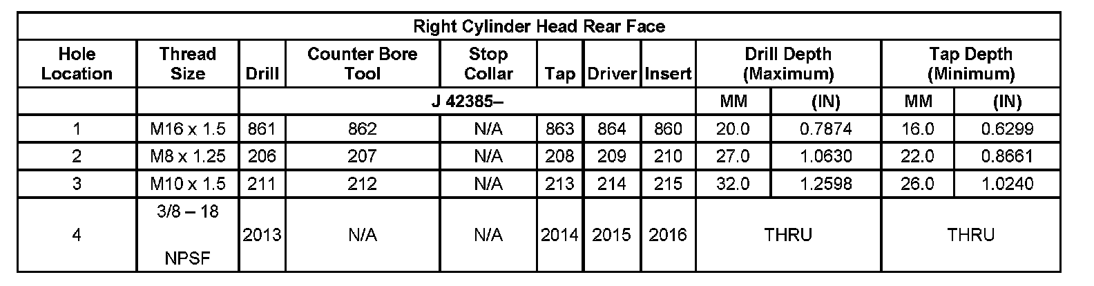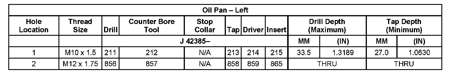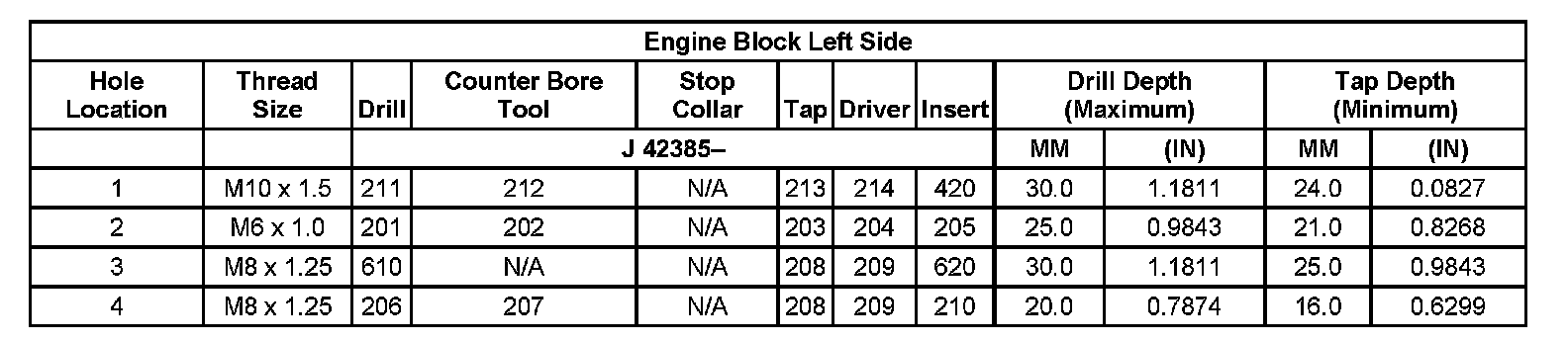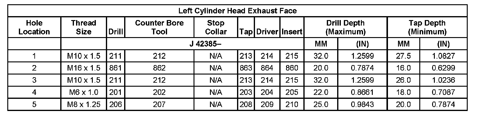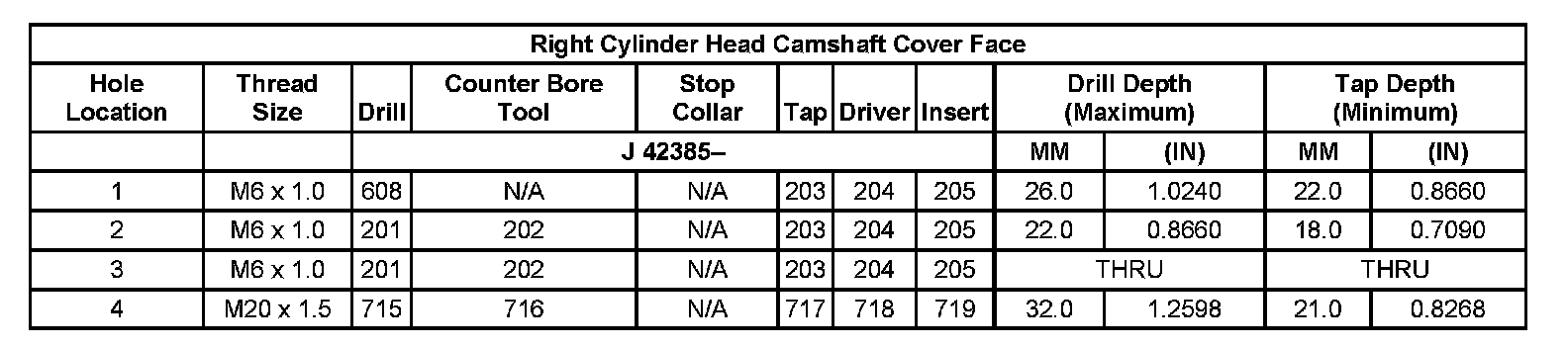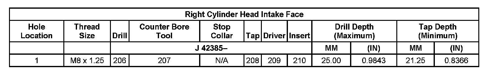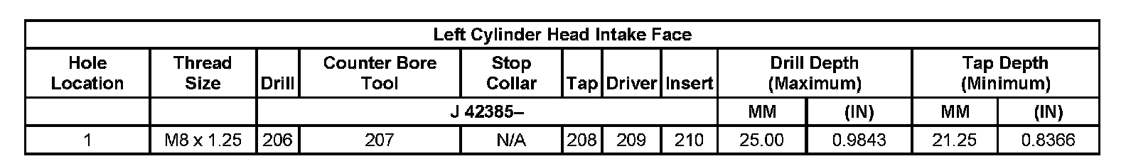 Thread Repair Specifications Left Cylinder Head Camshaft Cover Face: