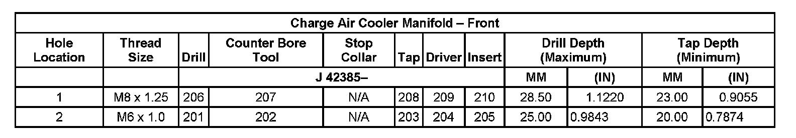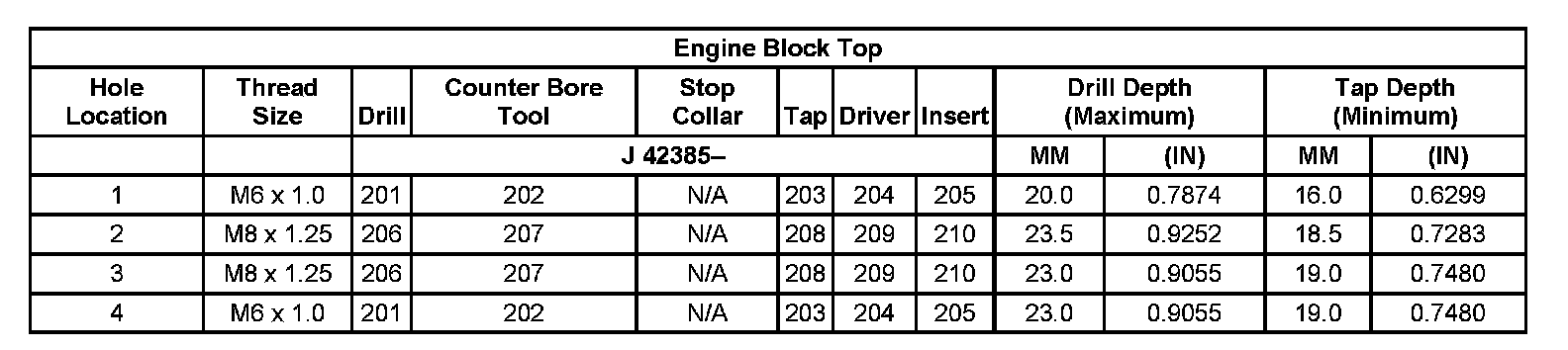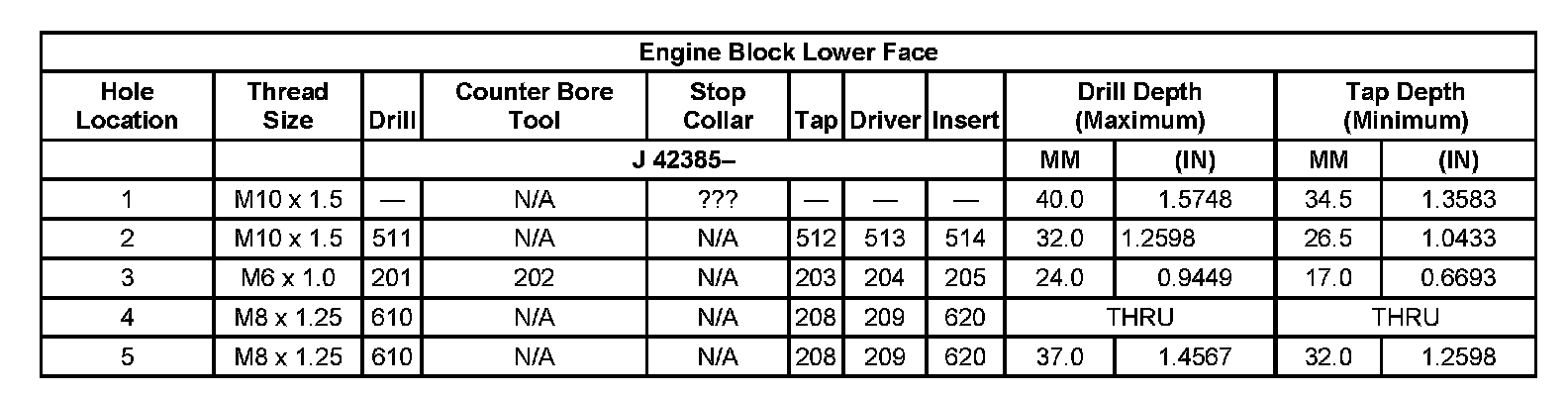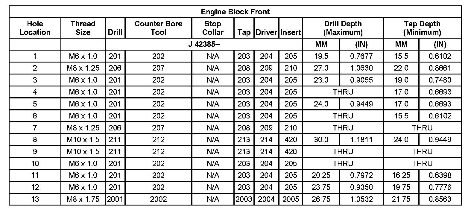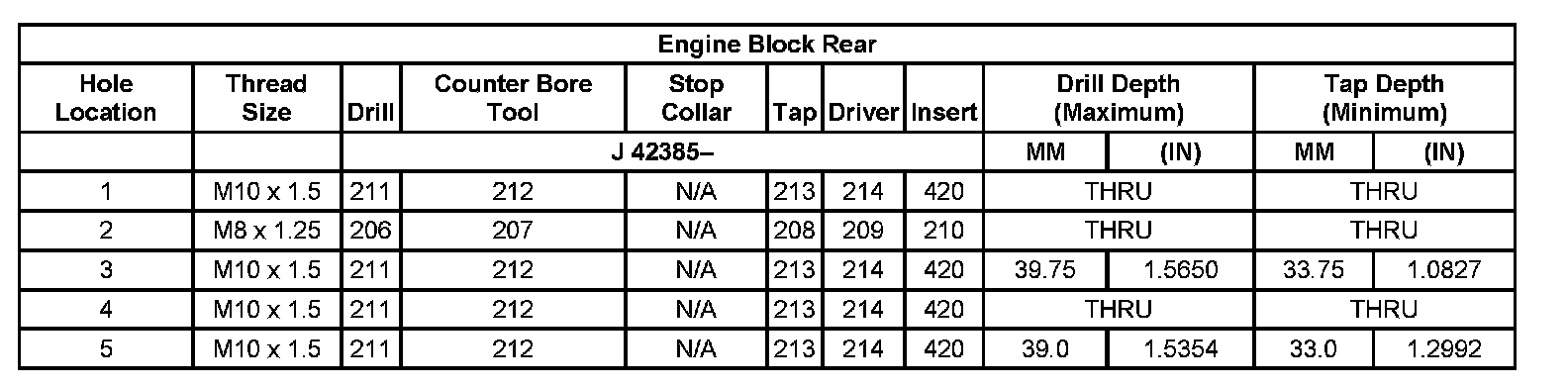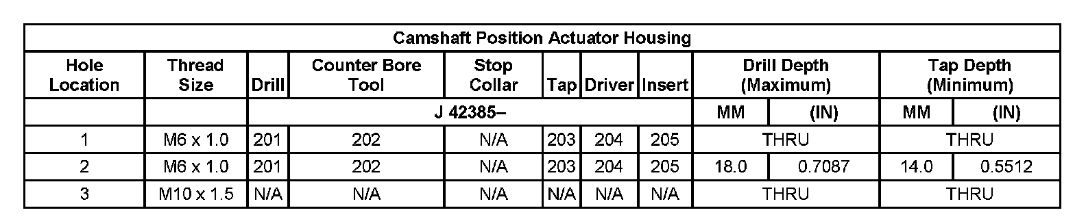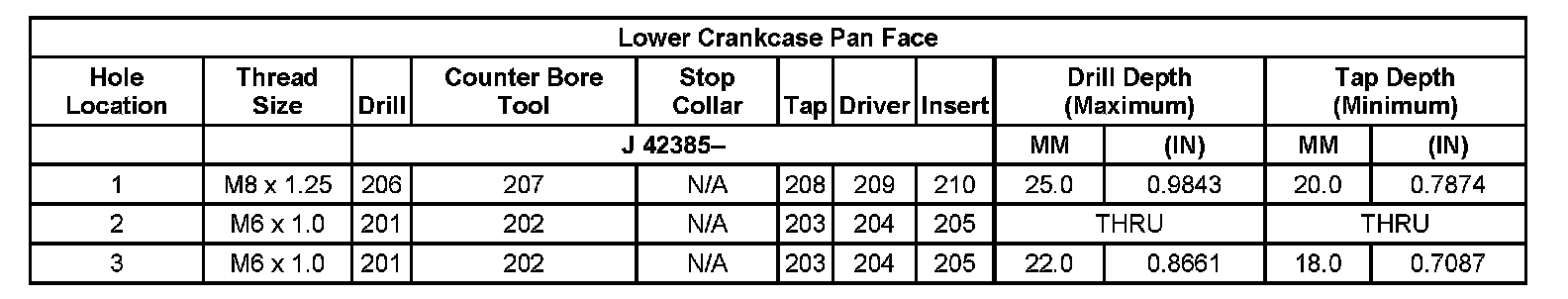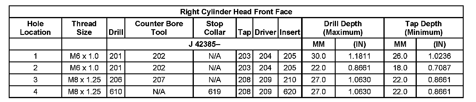 Thread Repair Specifications Left Cylinder Head Camshaft Cover Face: