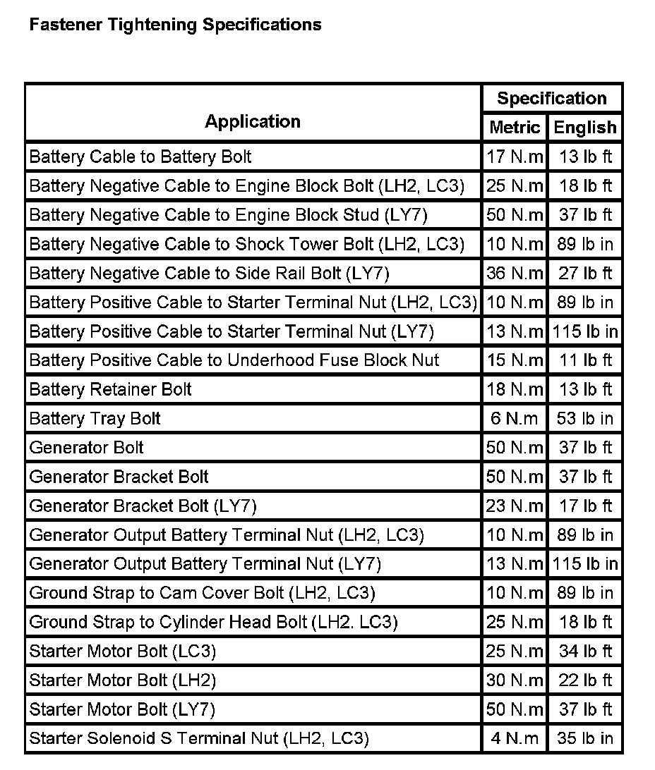 Fastener Tightening Specifications: