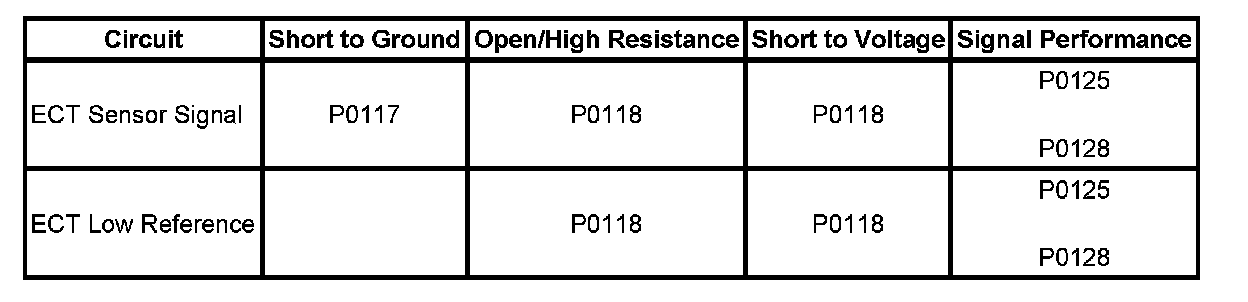 The diagnostic Fault Information table identifies each circuit that makes up an electrical subsystem and the associated circuit faults. DTCs and symptoms are listed in the table for all circuit fault modes. This information can be used to diagnose an electrical fault, or as a quick visual aid showing how the different symptoms and DTCs apply for the subsystem being diagnosed.