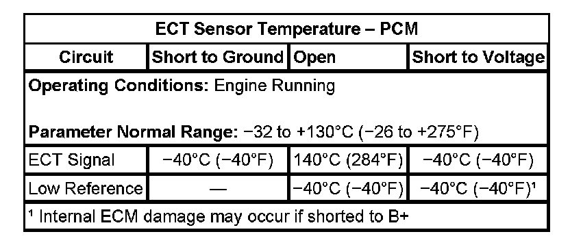 The Typical Scan Tool Data table identifies a scan tool data parameter and its value in reference to potential circuit faults.
