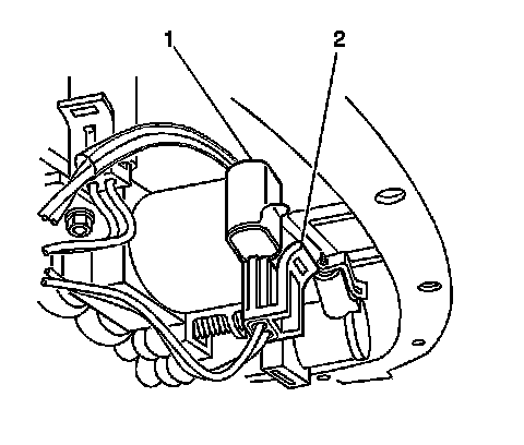 4. Connect the electrical wiring harness connector (2) to the pressure control solenoid (1).