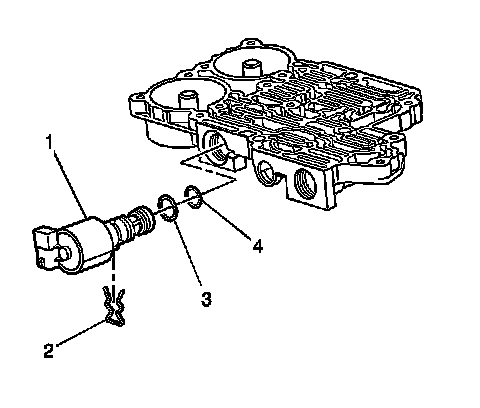 5. Remove the O-ring seals (3-4) from the pressure control solenoid (1), ONLY if the O-rings are cut or worn.