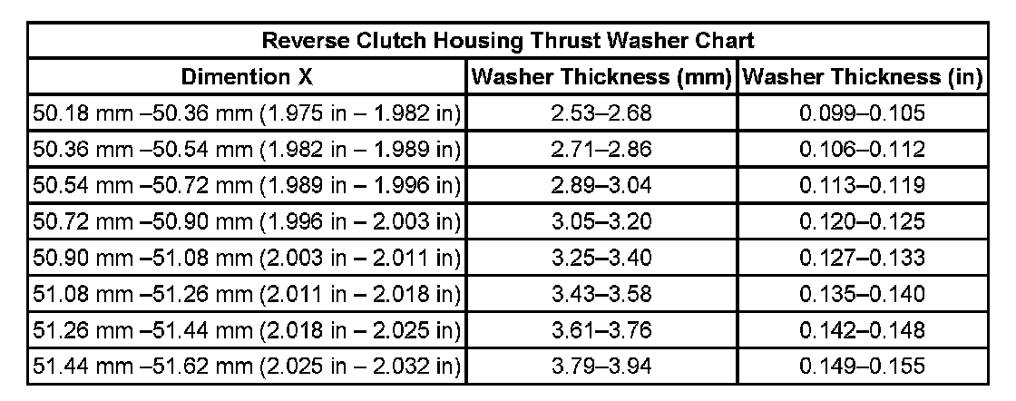 Reverse Clutch Housing Thrust Washer Chart: