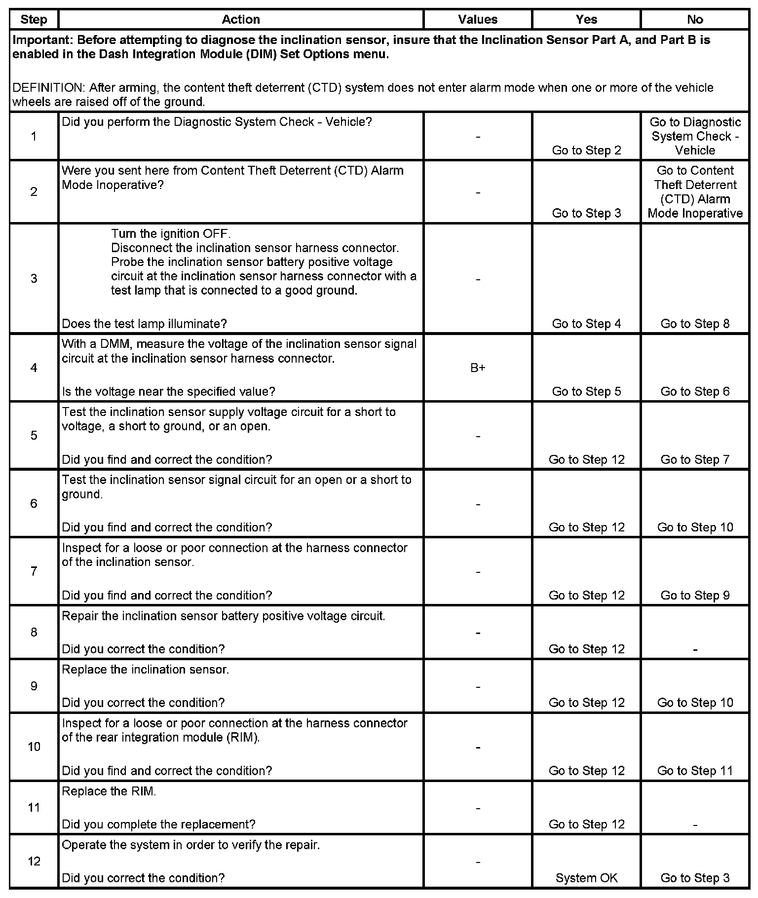Inclination Sensor Inoperative