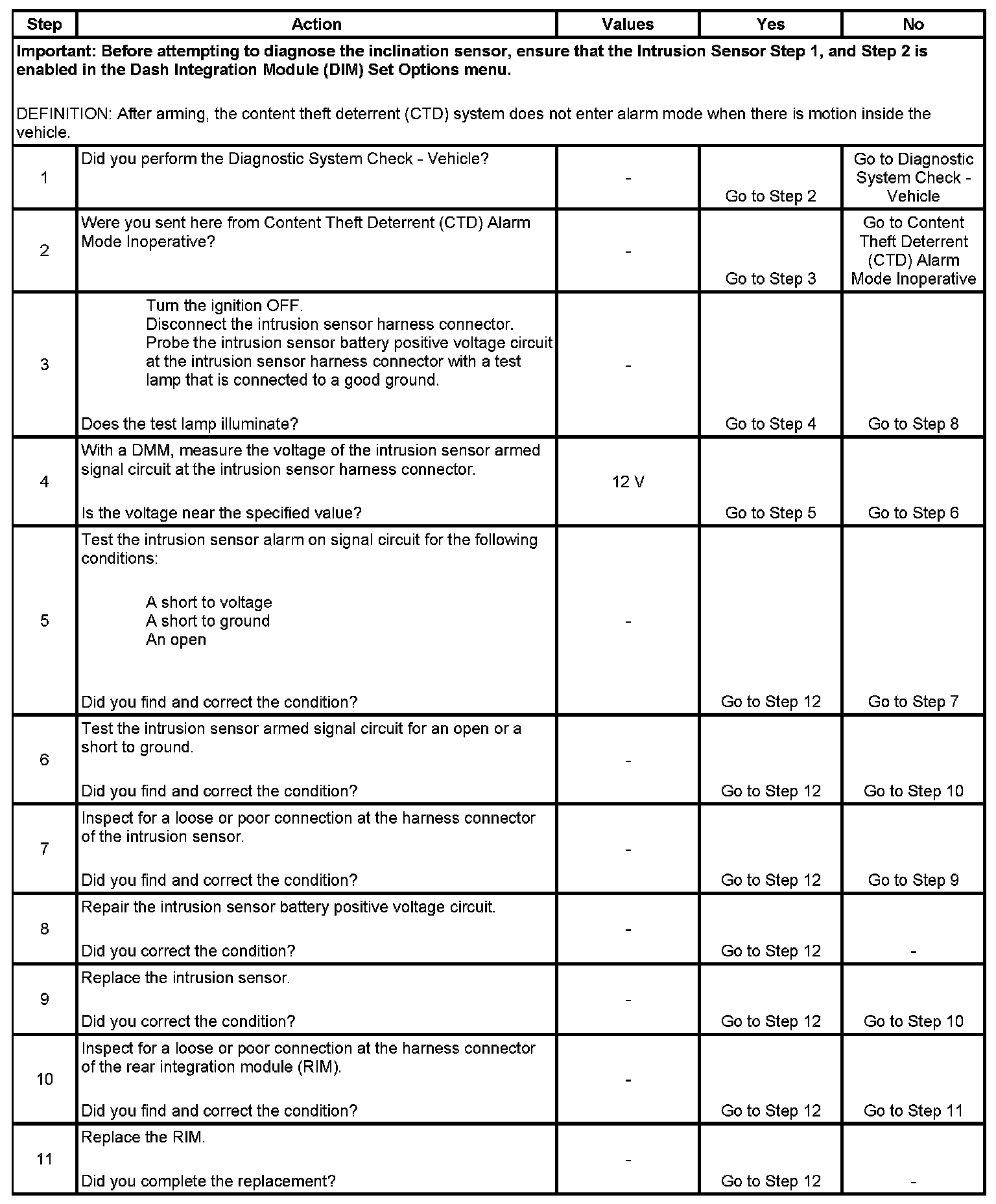 Intrusion Sensor Inoperative
