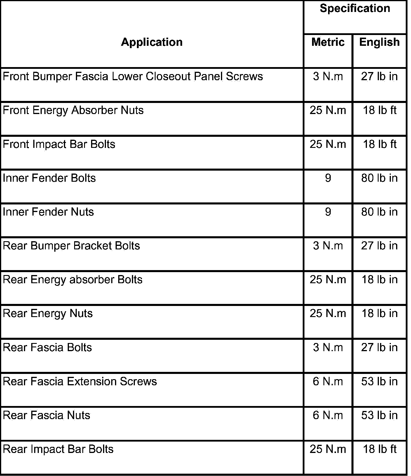 Fastener Tightening Specifications
