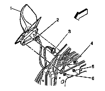 2. Disconnect the power mirror wire harness electrical connector (3).