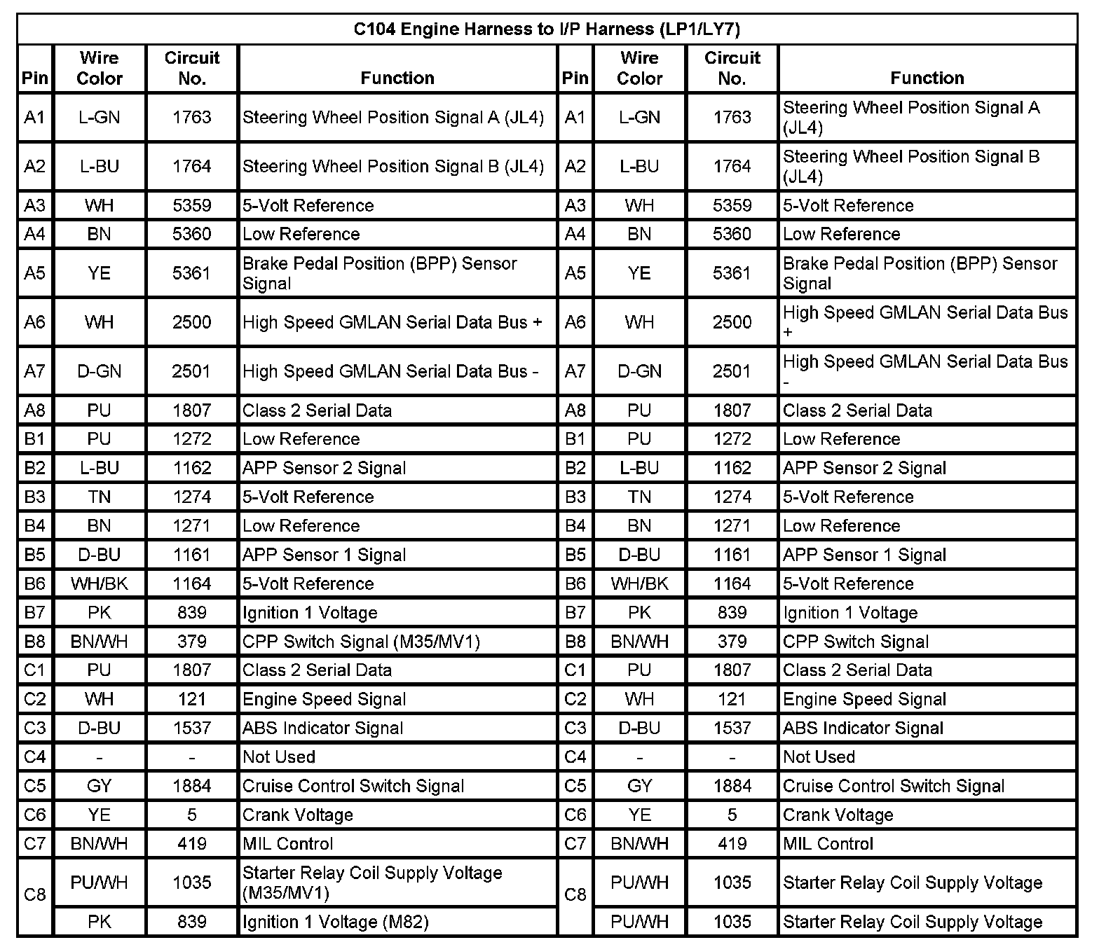 C104 Engine Harness to I/P Harness (LP1/LY7)
