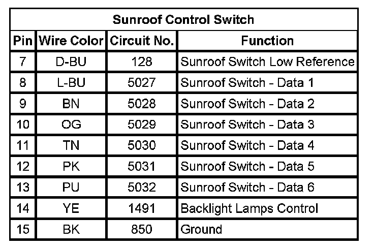 Sunroof Control Switch