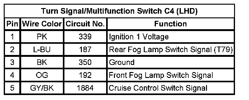 Turn Signal/Multifunction Switch C4 (LHD)