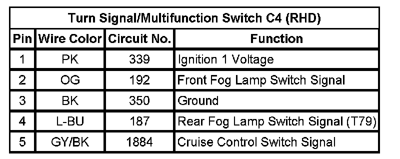 Turn Signal/Multifunction Switch C4 (RHD)