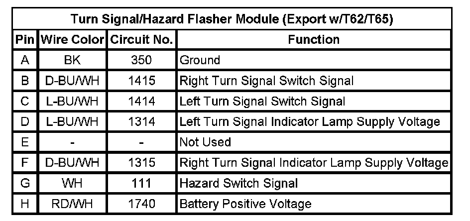 Turn Signal/Hazard Flasher Module (Export w/T62/T65)