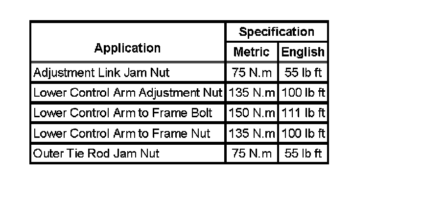 Fastener Tightening Specifications: