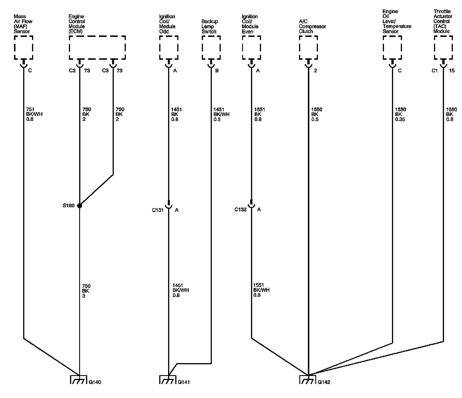 The locations for the Connectors, Grounds, Splices, and Grommets shown within these diagrams can be found via their numbers at Vehicle Locations.