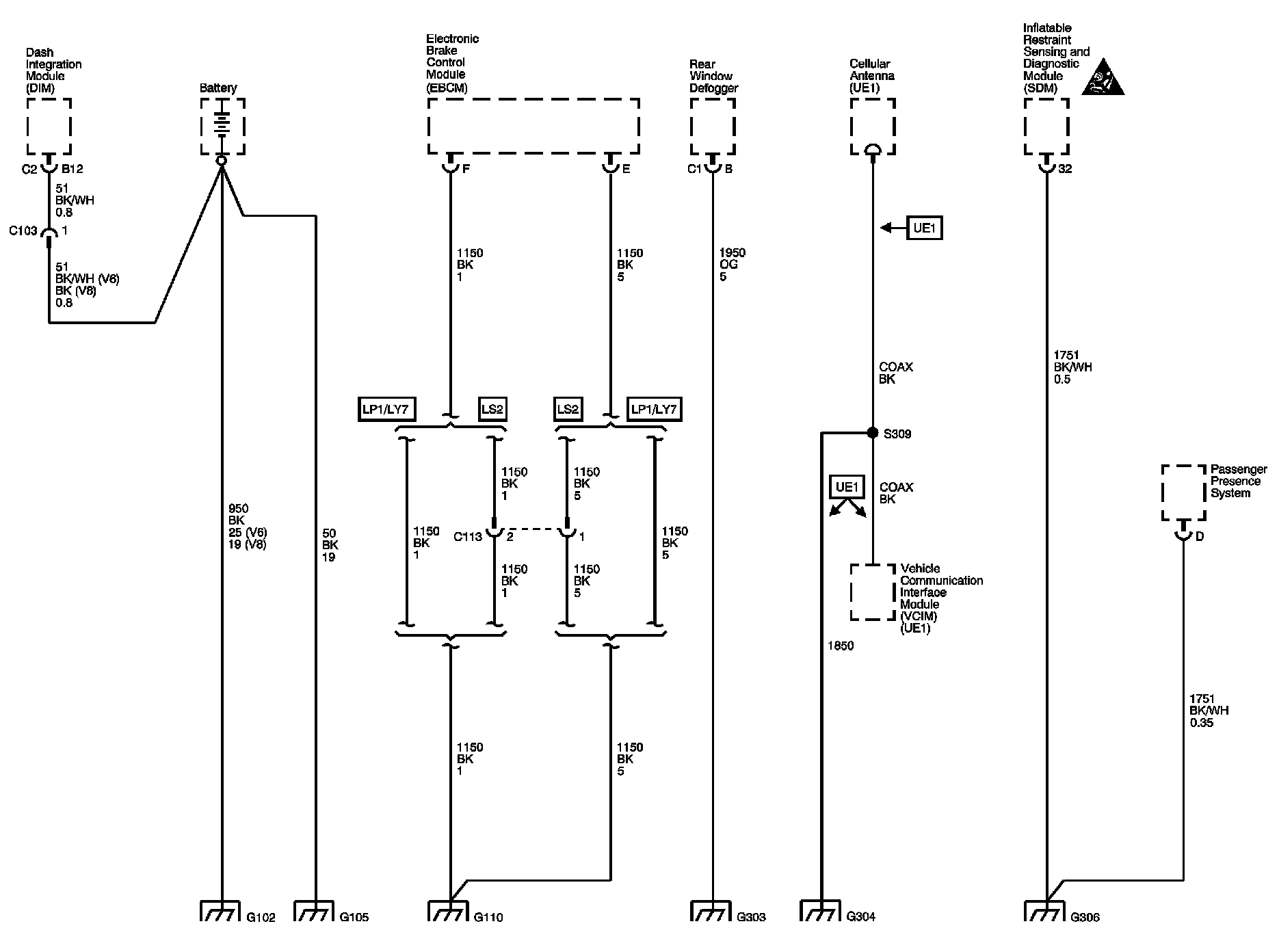 The locations for the Connectors, Grounds, Splices, and Grommets shown within these diagrams can be found via their numbers at Vehicle Locations.
