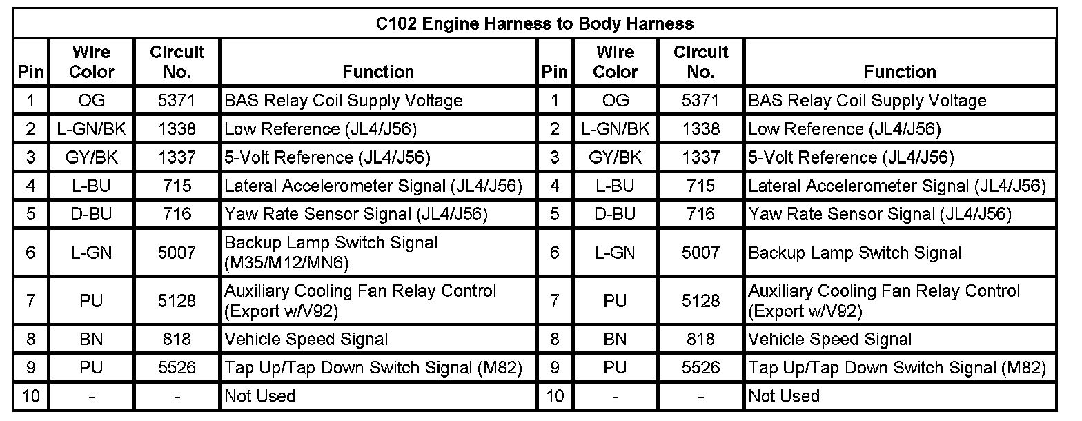 C102 Engine Harness to Body Harness