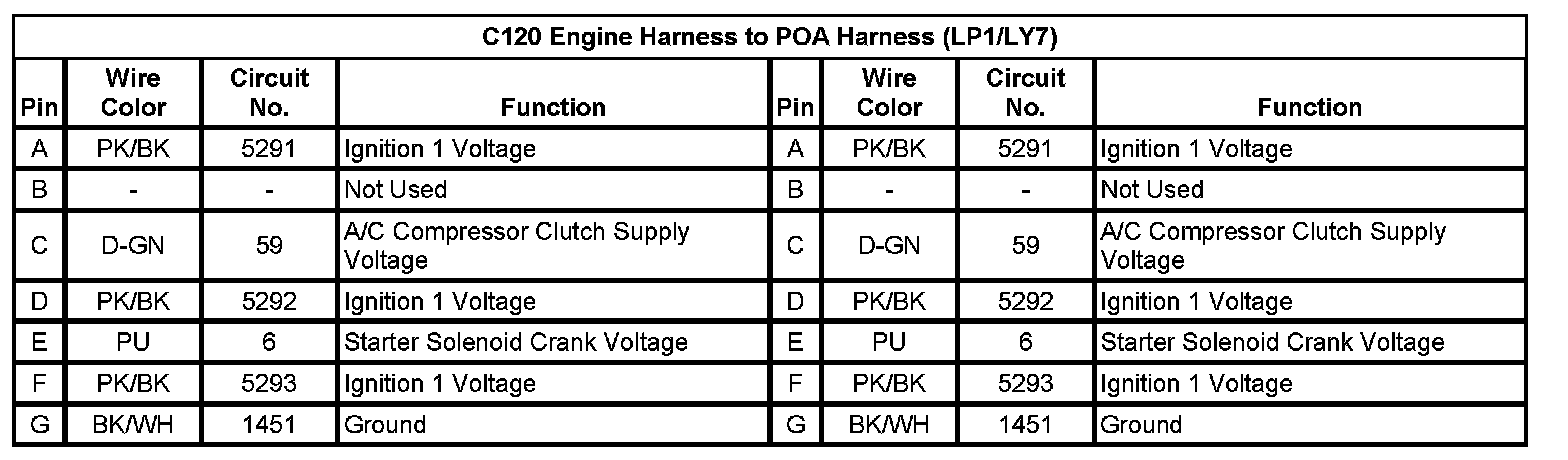 C120 Engine Harness to POA Harness (LP1/LY7)