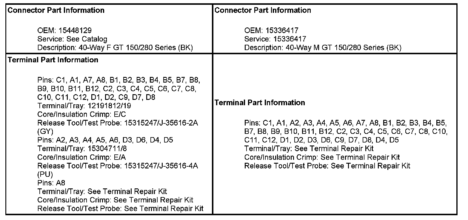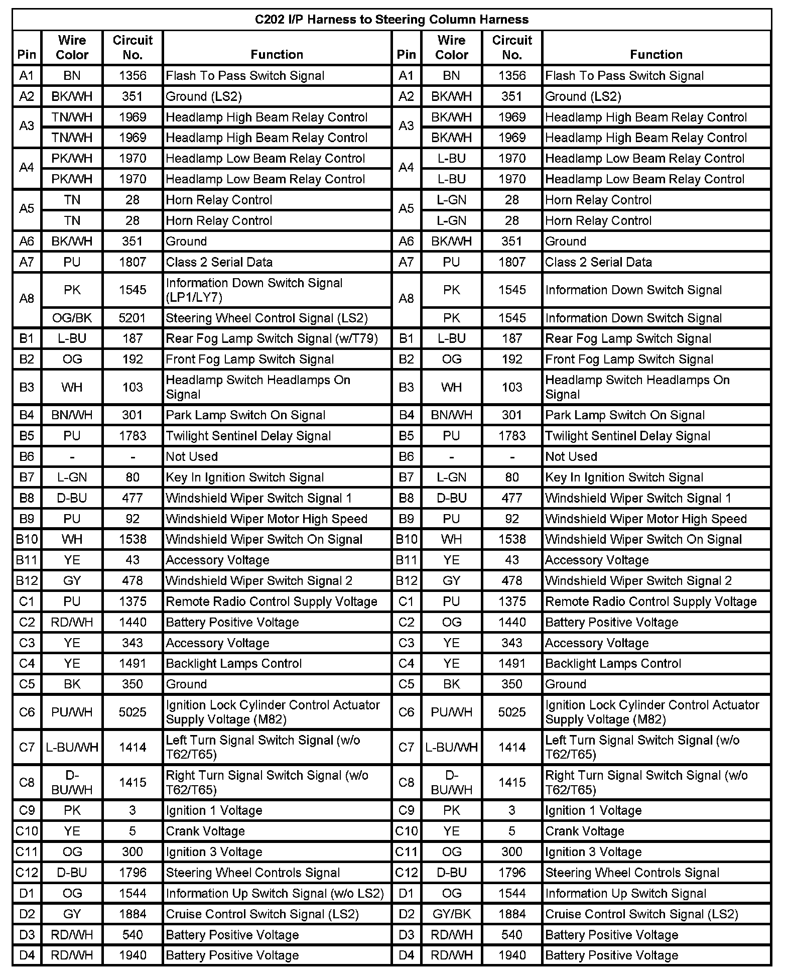 C202 I/P Harness To Steering Column Harness (Pin A1 To D4):
