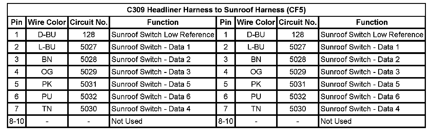 C309 Headliner Harness to Sunroof Harness (CF5)