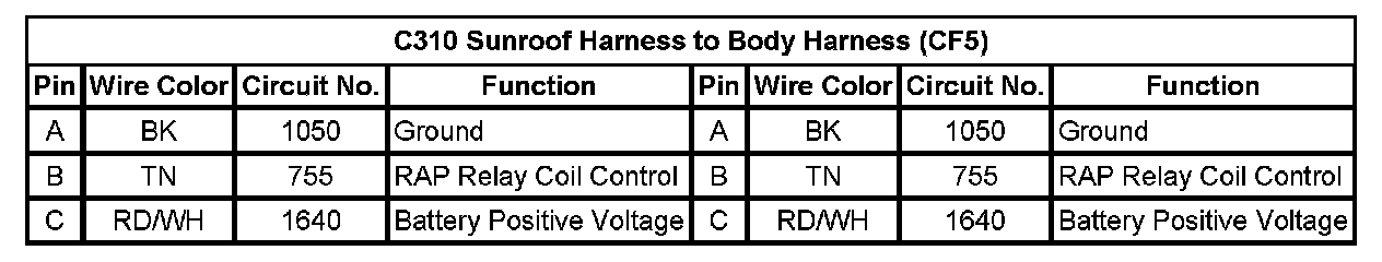 C310 Sunroof Harness to Body Harness (CF5)