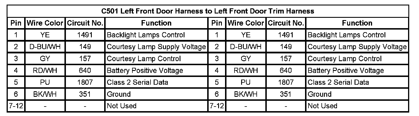 C501 Left Front Door Harness to Left Front Door Trim Harness