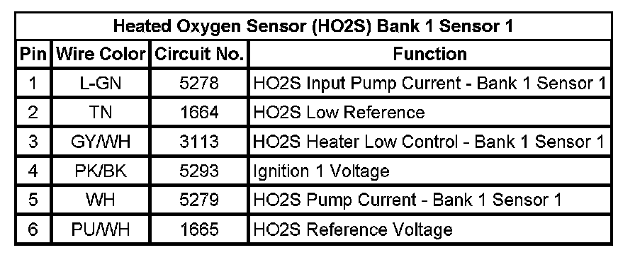 Heated Oxygen Sensor (HO2S) Bank 1 Sensor 1