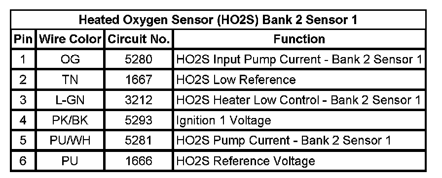 Heated Oxygen Sensor (HO2S) Bank 2 Sensor 1