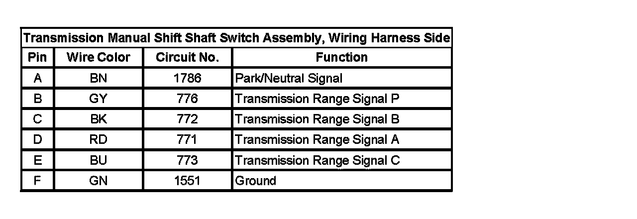 Transmission Position Sensor/Switch: Diagrams