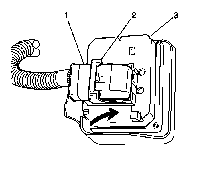 4. Rotate the EBCM connector tab (2) to the unlocked position.