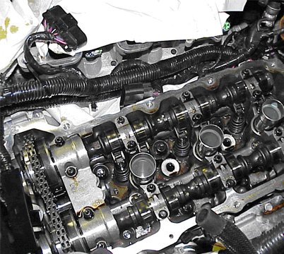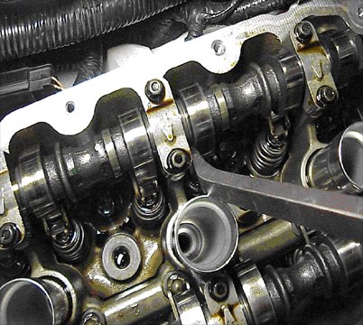 Remove the camshaft cover from the suspect cylinder head.
