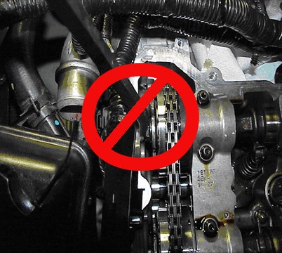 The engine front cover is removed for clarity in the following graphics, but NOT required to perform the procedure.
