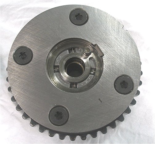 Before performing this procedure, inspect the rear of the camshaft position actuator. Refer to the pictures below to determine which actuator is installed on the vehicle. Use the appropriate procedure listed below.
