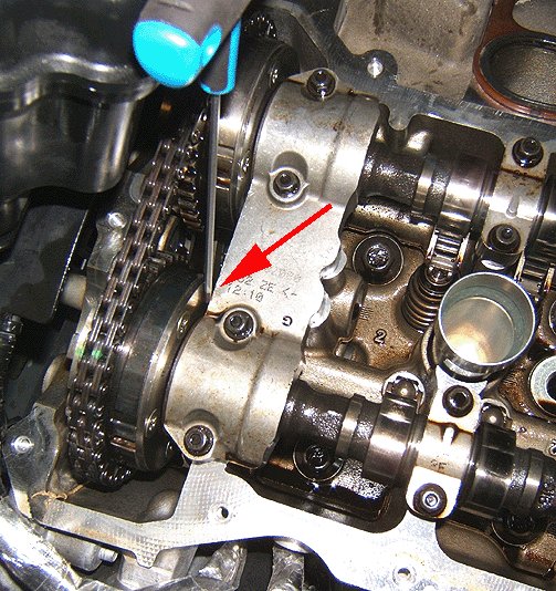 Use a 2.0 mm hex (allen) wrench as a determination gauge to measure the gap between the rear of the camshaft position actuator and the front camshaft cap of both camshafts of the suspect head.