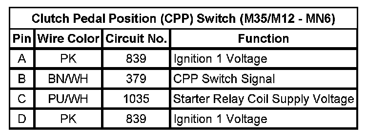 Clutch Pedal Position (CPP) Switch (M35/M12 - MN6)