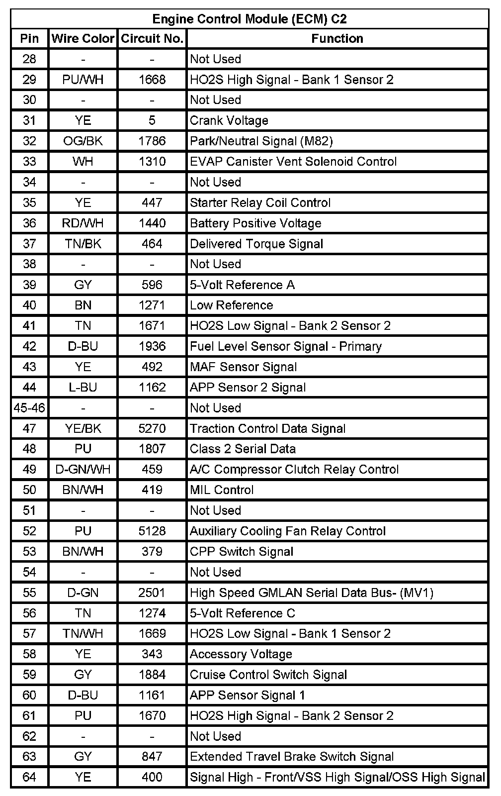 Engine Control Module (ECM) C2 (Pin 28 To 64):