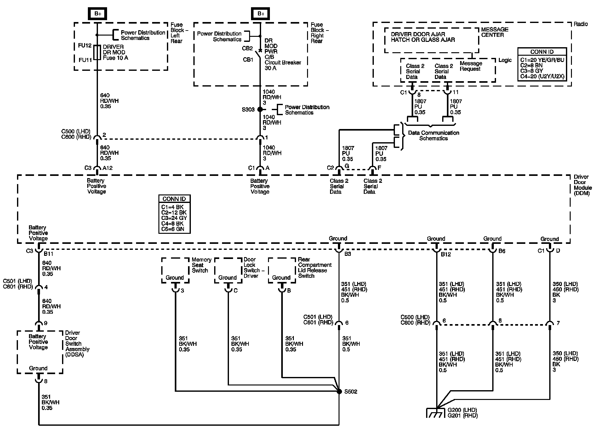 Driver Door Module (DDM) Power, Ground, and Serial Data