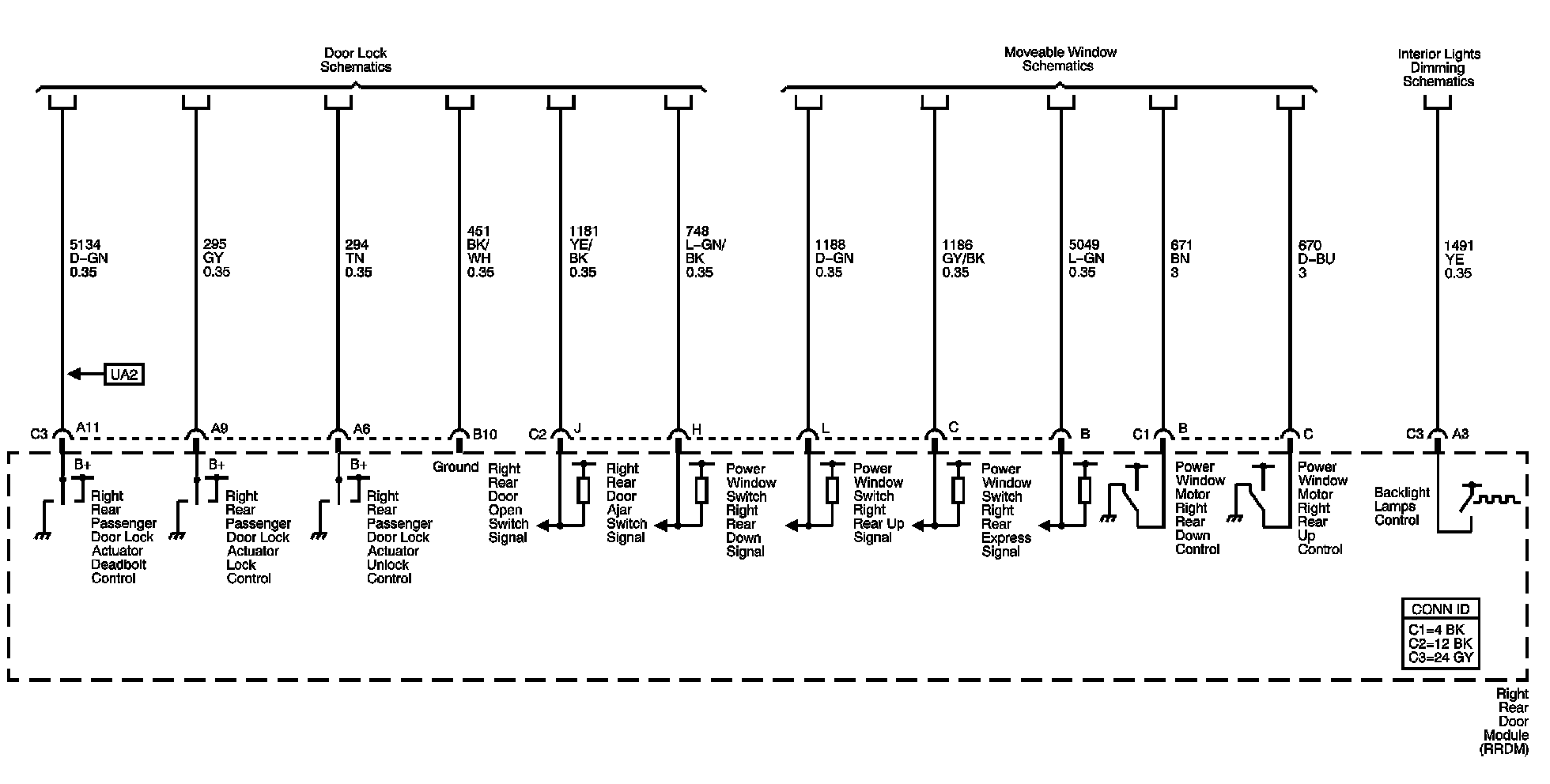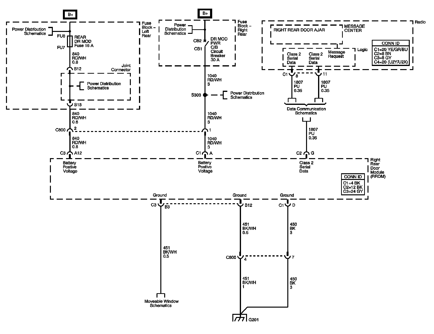 Right Rear Door Module (RRDM) Power, Ground, and Serial Data