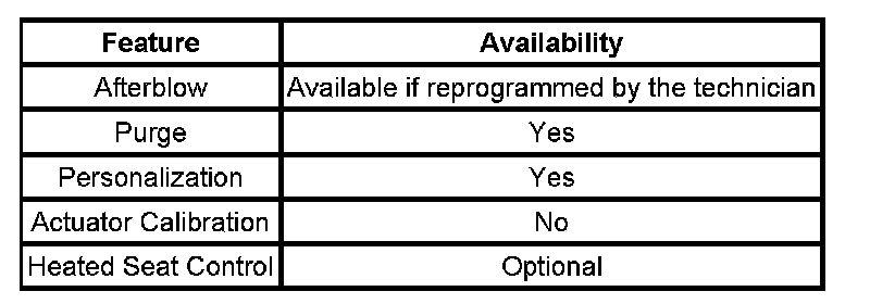 The HVAC control module will receive information that defines the current driver of the vehicle from the driver door module (DDM) through class 2 communication. The HVAC system will memorize the following system configurations for up to 2 unique drivers: