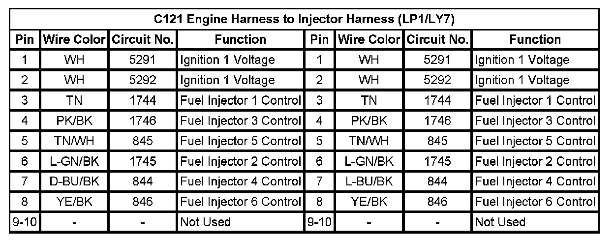 C121 Engine Harness to Injector Harness (LP1/LY7)