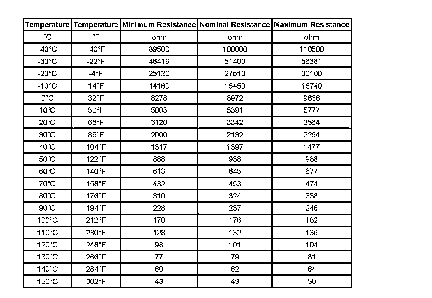 Transmission Fluid Temperature Sensor Specifications