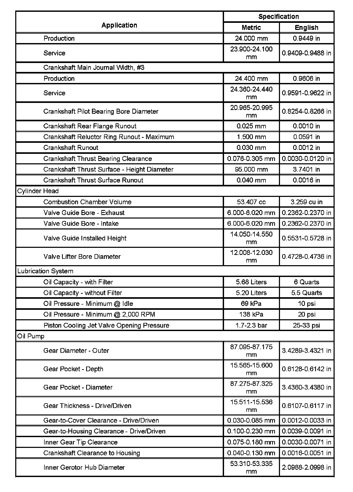 Engine Mechanical Specifications (Part 3):