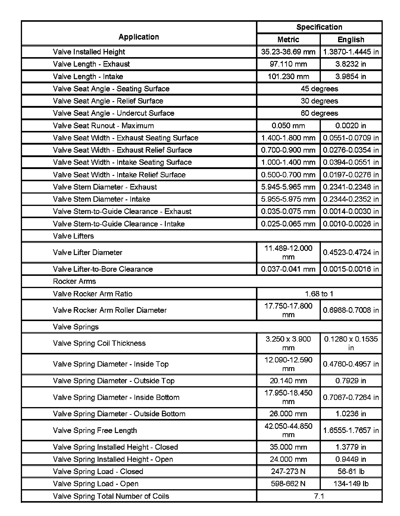 Engine Mechanical Specifications (Part 4):