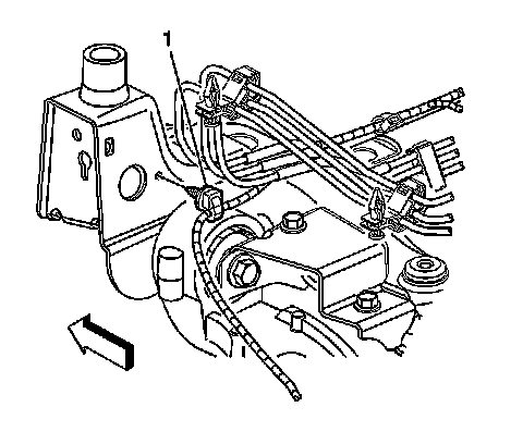 2.Loosen the brake pressure modulator valve nuts (1) in order to separate the brake pressure modulator valve (2) from the bracket assembly.
