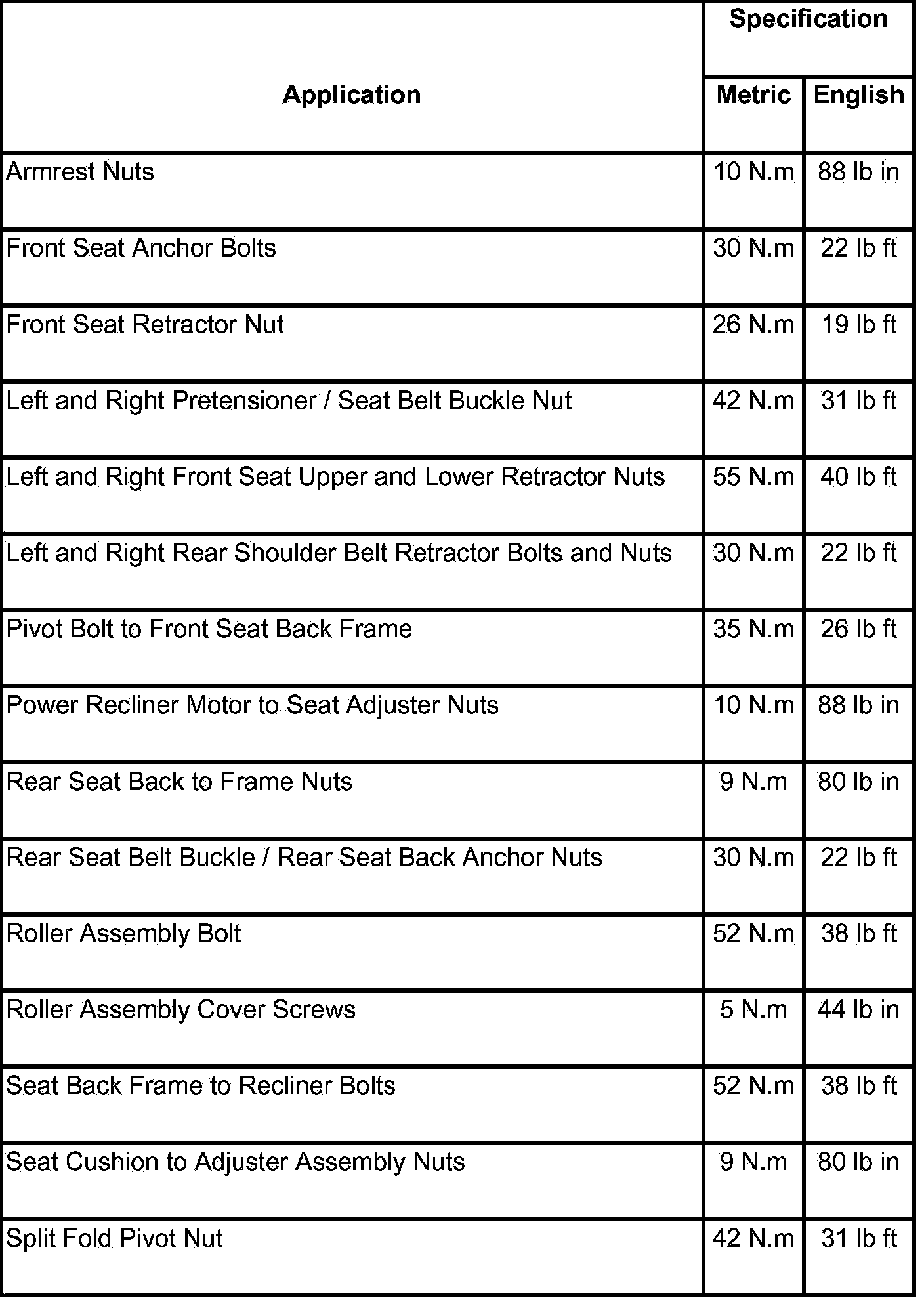Fastener Tightening Specifications