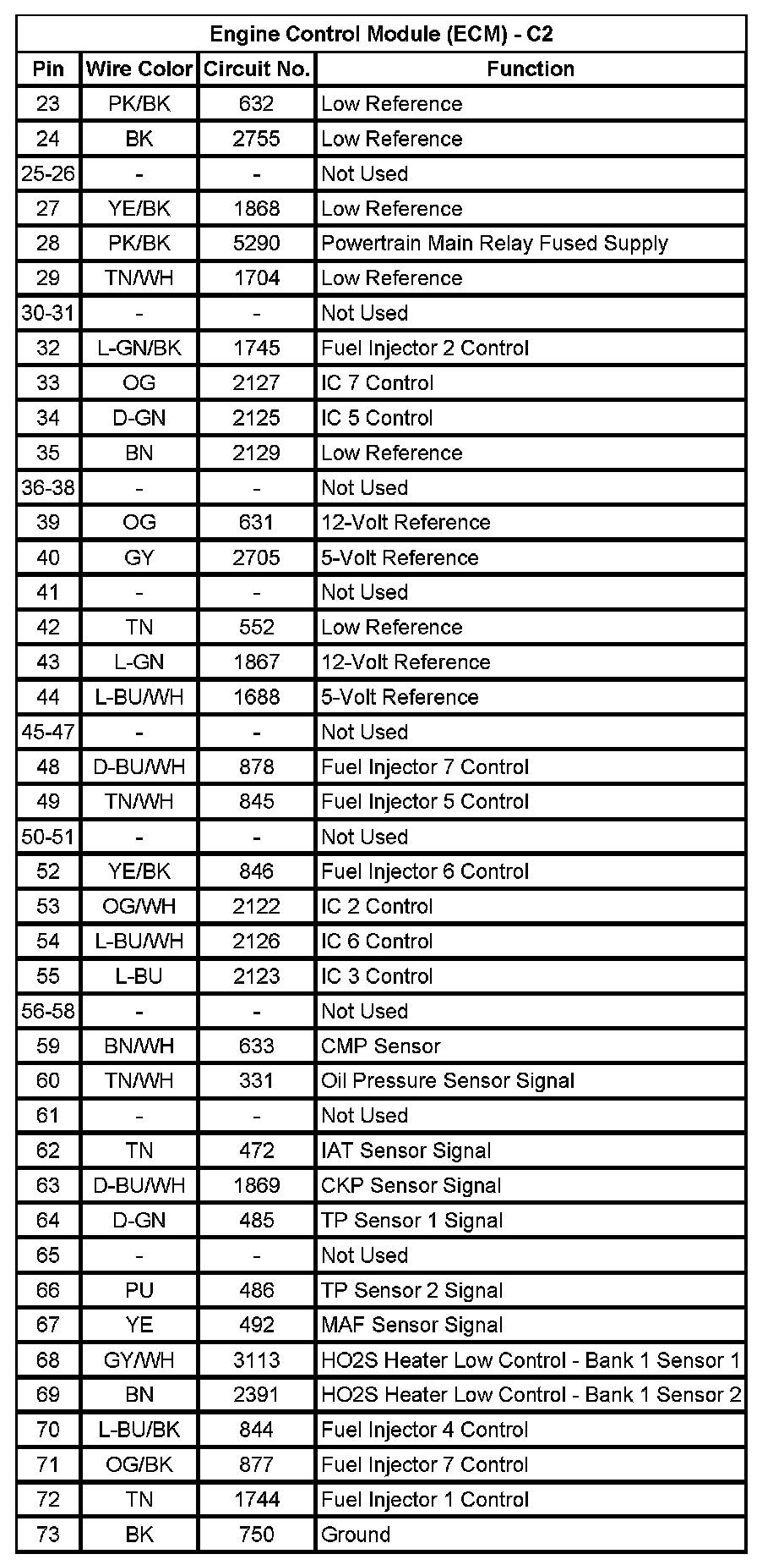 Engine Control Module (ECM) - C2 (Pin 23 To 73):
