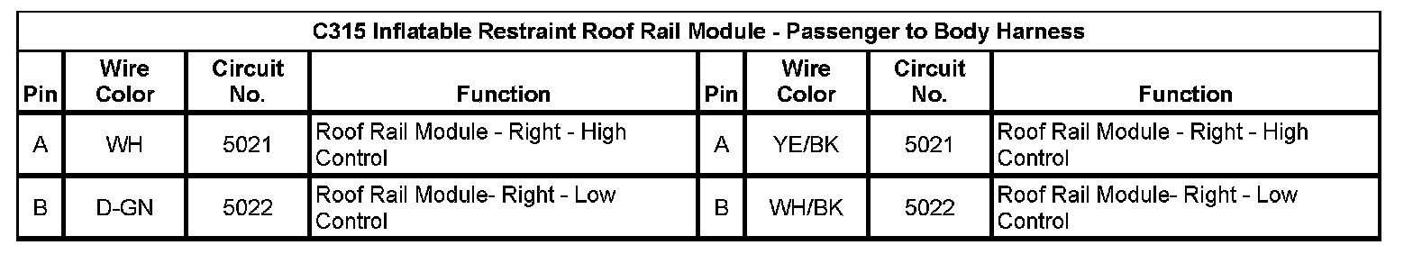 C315 Inflatable Restraint Roof Rail Module - Passenger to Body Harness