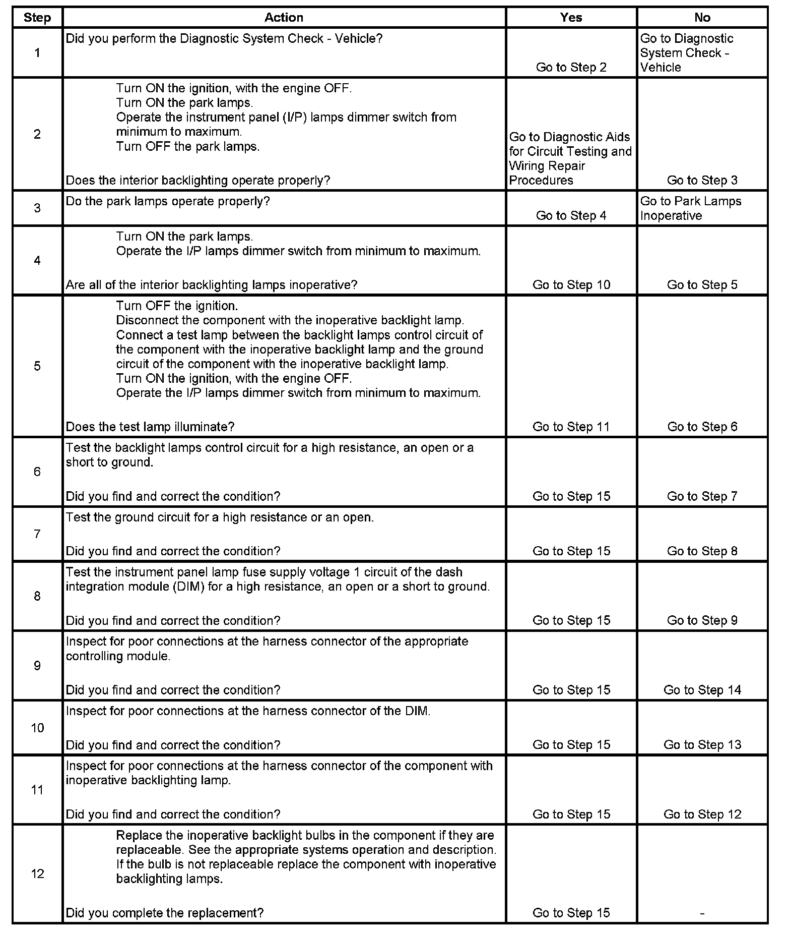 Interior Backlighting Inoperative