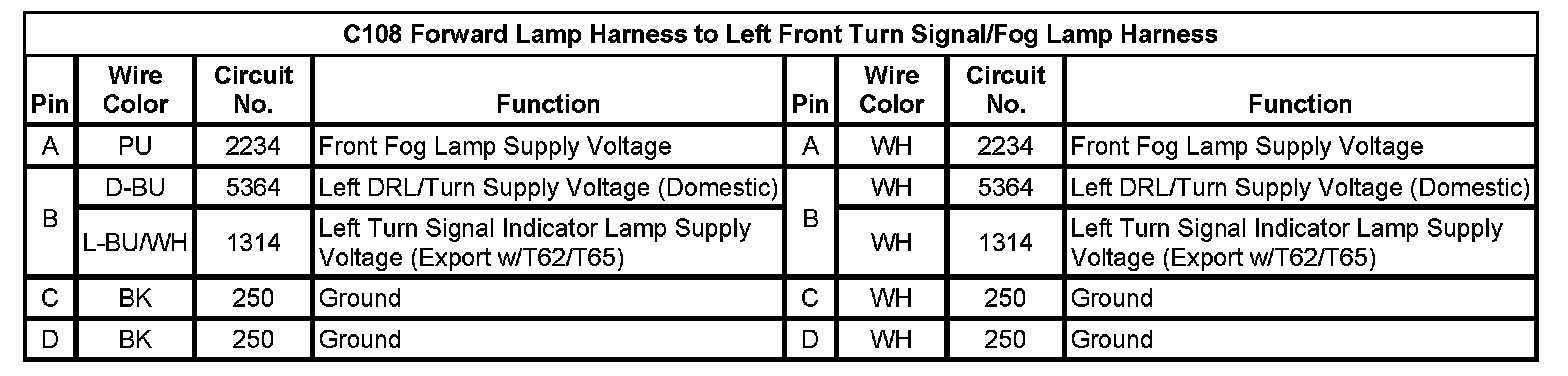 C108 Forward Lamp Harness to Left Front Turn Signal/Fog Lamp Harness